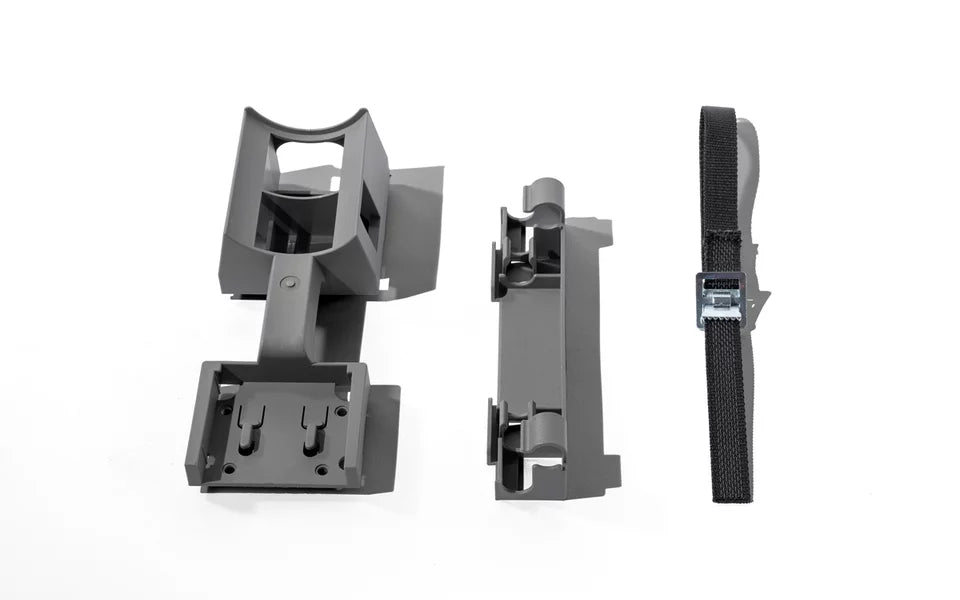 De 3-delige houder is speciaal ontwikkeld om het waterfilter en de waterslangen eronder te houden. De houder heeft ook een praktische spanband om het filterpatroon onderweg vast te zetten.