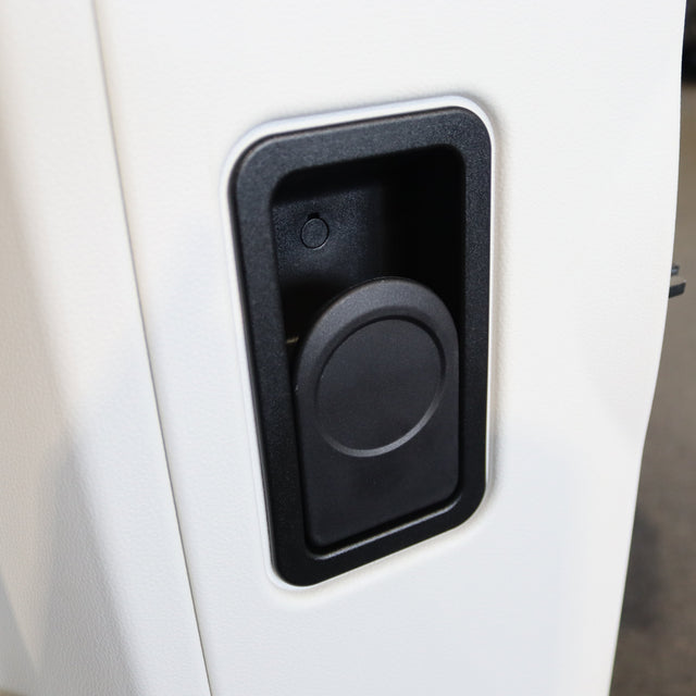 Dit deurgreepmechanisme is bedoeld voor de binnenzijde van de cabinedeur van Carado T-serie campers. Het vervangt een defect of afgebroken mechanisme, zodat de deur weer soepel van binnenuit te openen is.