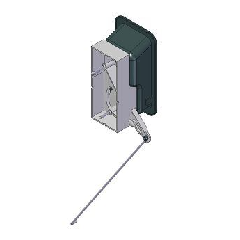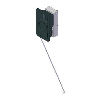 Het onderdeel bestaat uit de zwarte inbouwkom, de bedieningshendel en de bijbehorende trekstang die het slot aanstuurt.