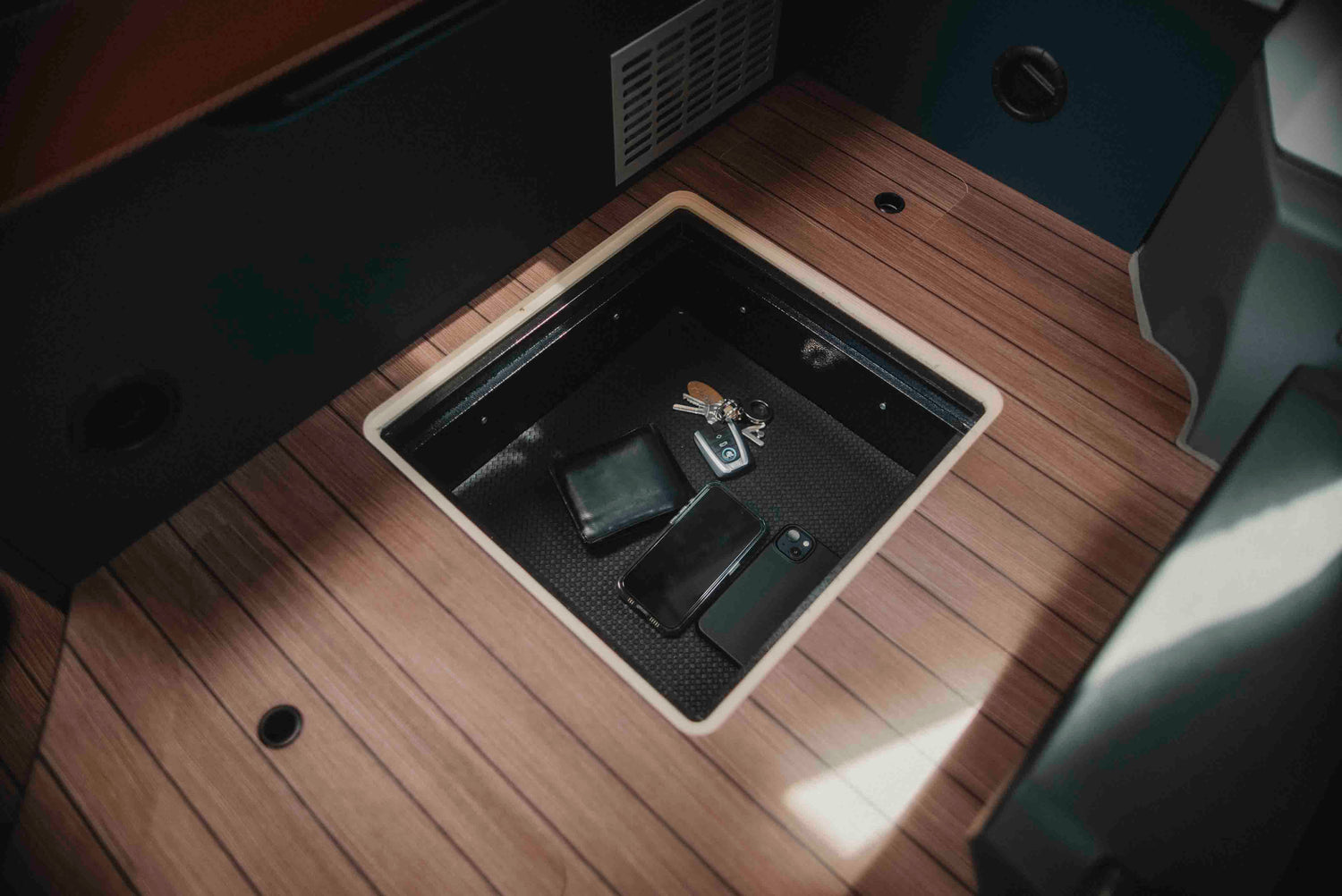 Deze kluis is ontworpen voor montage in het opberg vak in de vloer onder de zithoek van de camper. Door de bevestiging met lijm en schroeven biedt de safe een solide bescherming tegen inbraak. Omdat de kluis volledig wegvalt onder de vloerafdekking, blijft deze onzichtbaar voor onbevoegden.