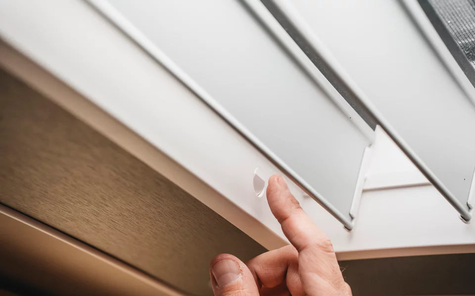 Het opklapbare verduisteringssysteem kan in slechts enkele seconden worden vervangen door de aluminium lamellen door het betreffende frame te verwisselen.