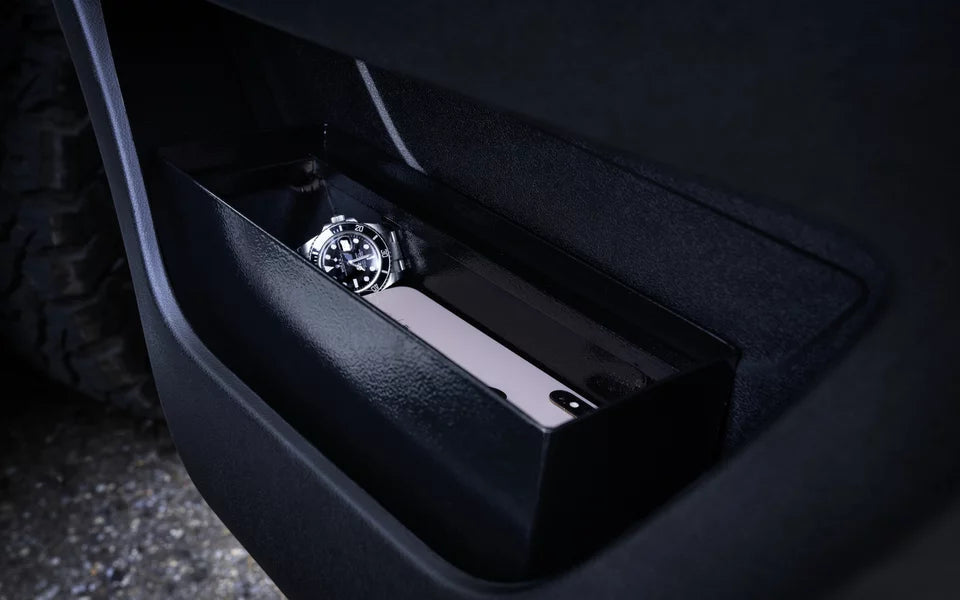 De kluis voor de Fiat Ducato (Serie 8) bevindt zich opnieuw in het passagiersportier en biedt voldoende ruimte voor de belangrijkste zaken die je onderweg veilig wilt bewaren, zoals je portemonnee, creditcards, mobiele telefoons, identiteitspapieren, contant geld en sieraden: Portemonnee, creditcards, mobiele telefoons, identiteitspapieren, contant geld, sieraden...