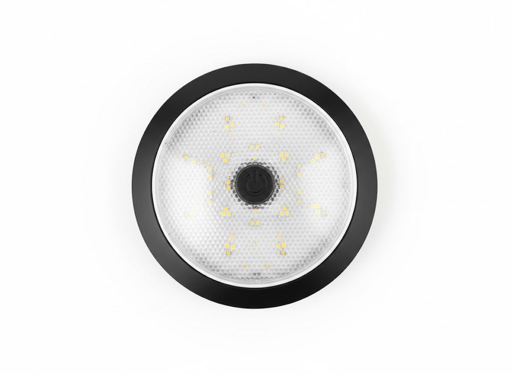 Vervangingsarmatuur voor de standaard verlichting in Hymer-campers. Deze ronde LED-lamp wordt veel gebruikt als garageverlichting en in de bedkasten van onder andere de BMC-T en BMC-I modellen.