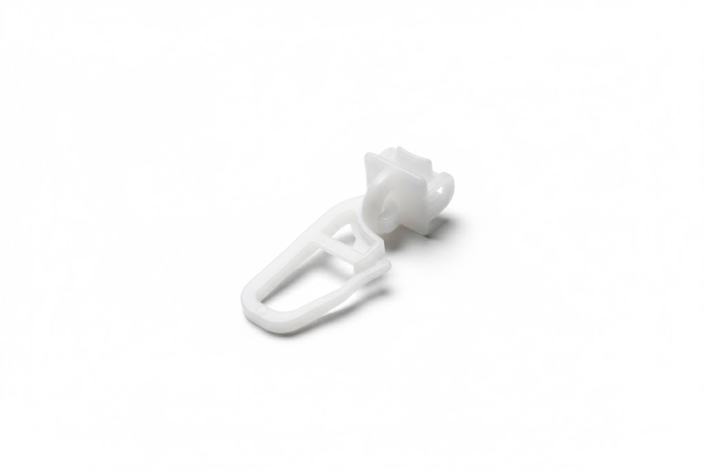 Deze witte gordijnhaakjes van Hymer (ook wel gordijnrunners genoemd) zijn specifiek ontworpen voor het railsysteem in Hymer campers. De haken glijden soepel door de rails, zodat je gordijnen zonder haperen openen en sluiten.