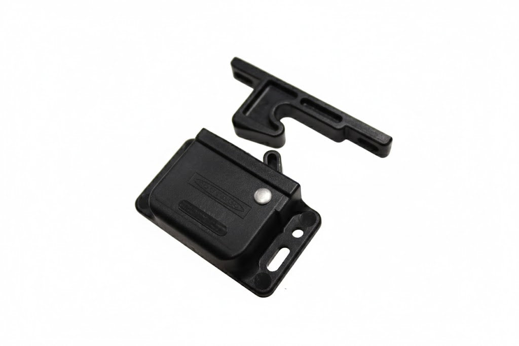 Deze zwarte kunststof snapper is een direct vervangingsonderdeel voor de kastsluitingen in Hymer campers. Ideaal om een lamme of afgebroken sluiting te vervangen, zodat deurtjes onderweg weer betrouwbaar vergrendeld blijven.