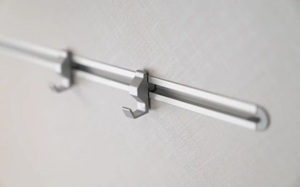 Dankzij de hoogwaardige en zeer stevige metalen haken kun je je keukengerei zoals pannenlappen en theedoeken flexibel aan de rail hangen.