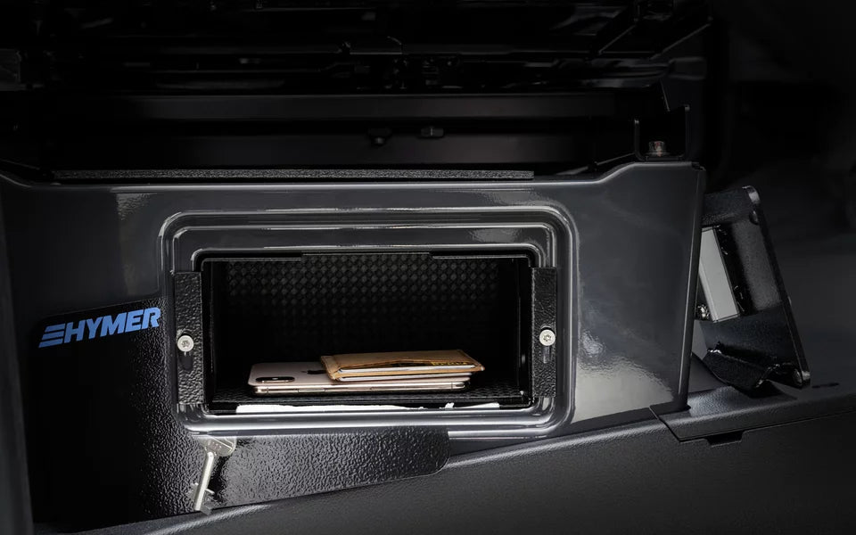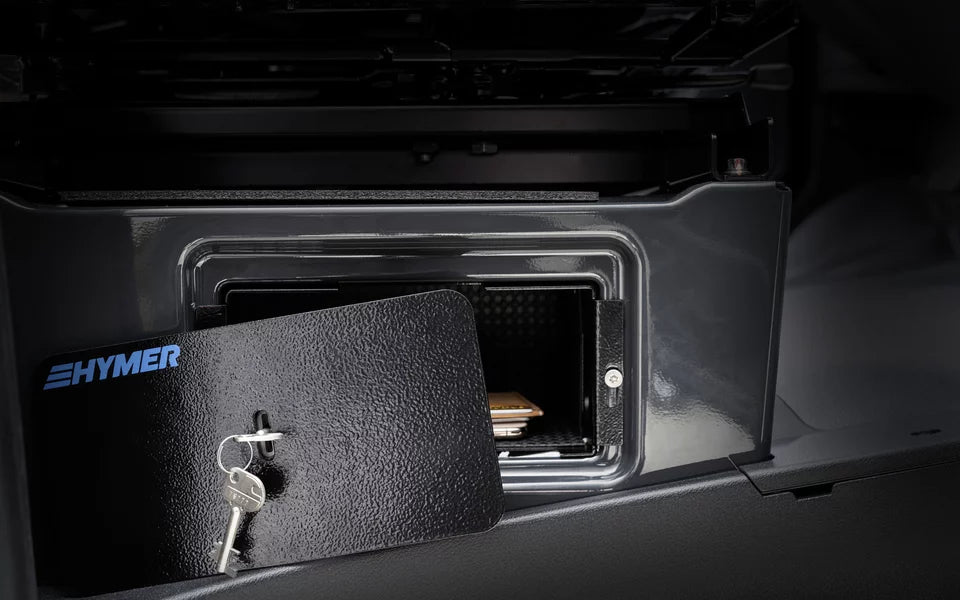 Zoals het gezegde luidt: "Gelegenheid maakt dieven". Creëer in de eerste plaats geen gelegenheid en laat waardevolle spullen open of enigszins verborgen achter in de camper. Met de kluis voor de passagiersstoelconsole van alle op Mercedes Sprinter gebaseerde campers zijn uw waardevolle spullen veilig opgeborgen.