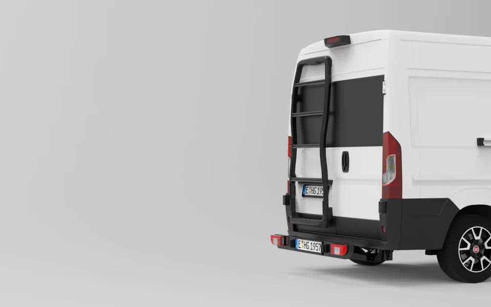 Wanneer onderdelen van de Backrack+ de lichtbundel van de achterlichten of het zicht op de kentekenplaat belemmeren, moeten de kentekenplaat en de verlichting worden verplaatst of gedupliceerd. Een extra inklapbare treeplank vergemakkelijkt de instap aan de achterzijde van de camper aanzienlijk. Zodra de mechanische voorbereidingen zijn getroffen, kunnen de nummerplaat en de lichtbalk snel worden gemonteerd en gedemonteerd. Wij raden aan om de installatie door een erkende dealer te laten uitvoeren.