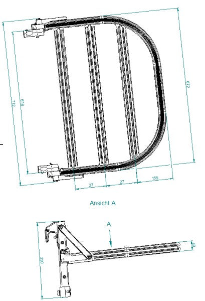 - Kan in twee posities worden gemonteerd (boven en onder). Dit betekent dat er twee Mini Racks per Backrack+ mogelijk zijn. - Afmetingen laadruimte: ca. 720 mm x 470 mm